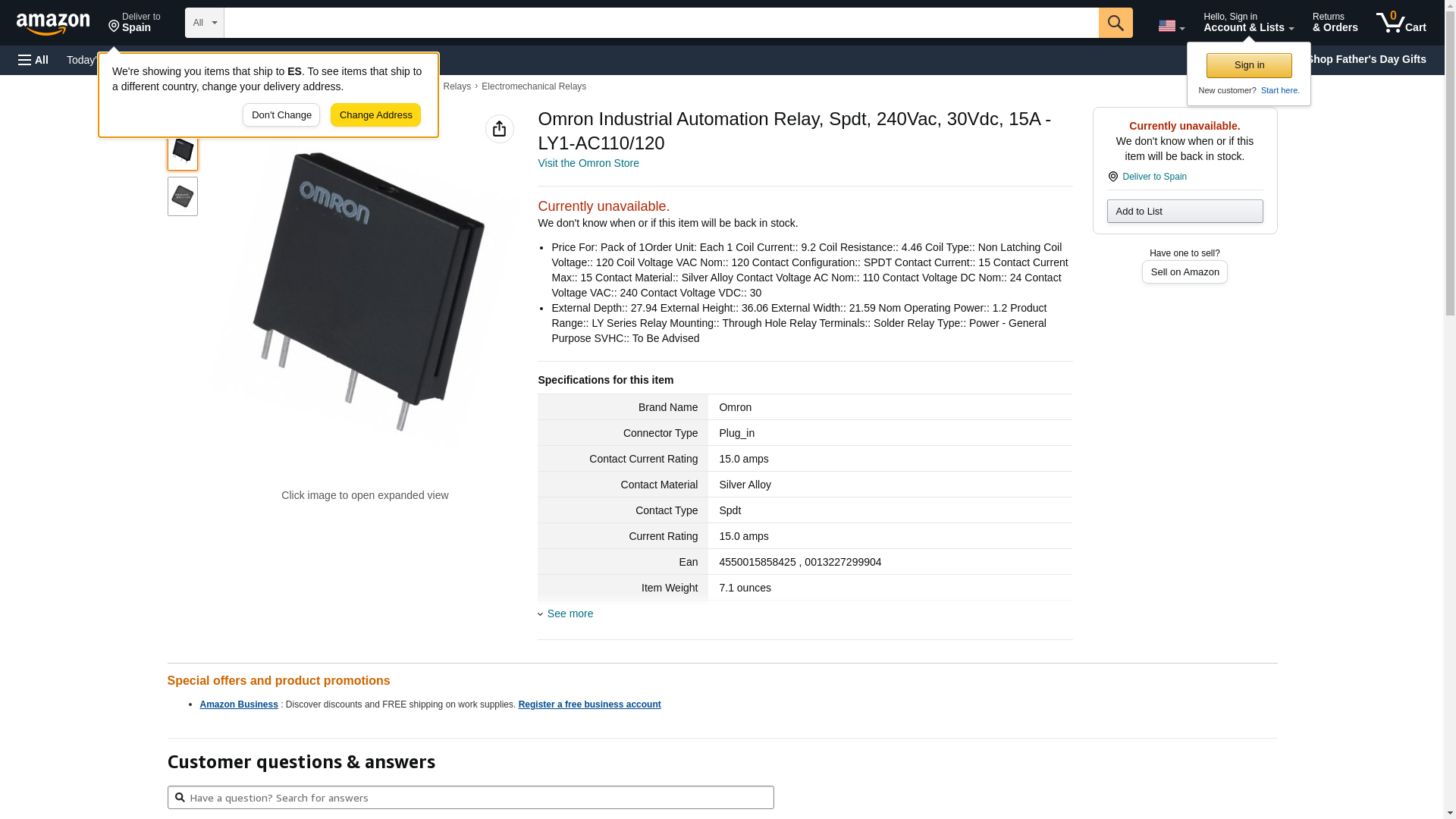 - <b>Price For:</b> Pack of 1<b>Order Unit:</b> Each 1 <b>Coil Current:</b>: 9.2 <b>Coil Resistance:</b>: 4.46 <b>Coil Type:</b>: Non Latching <b>Coil Voltage:</b>: 120 <b>Coil Voltage VAC Nom:</b>: 120 <b>Contact Configuration:</b>: SPDT <b>Contact Current:</b>: 15 <b>Contact Current Max:</b>: 15 <b>Contact Material:</b>: Silver Alloy <b>Contact Voltage AC Nom:</b>: 110 <b>Contact Voltage DC Nom:</b>: 24 <b>Contact Voltage VAC:</b>: 240 <b>Contact Voltage VDC:</b>: 30