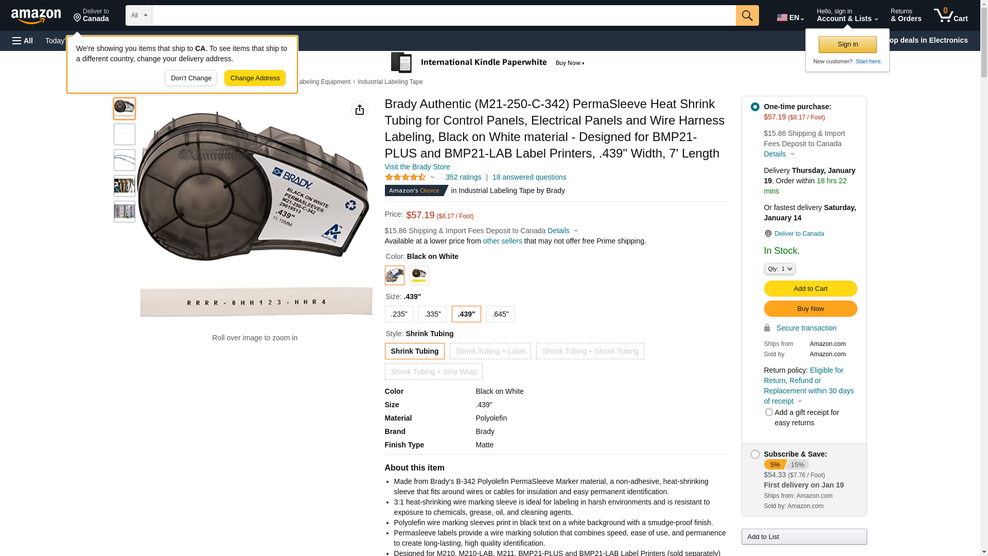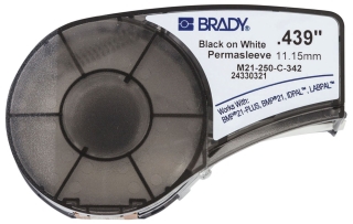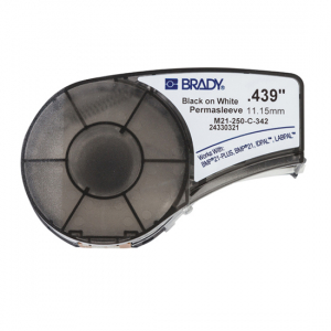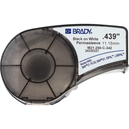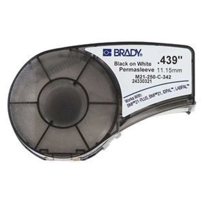 Brady Authentic (M21-250-C-342) PermaSleeve Heat Shrink Tubing for Control and Electrical Panels, Wire Harness, Black on White- For M210, M210-LAB, M211, BMP21-PLUS and BMP21-LAB Printers, .439" W 7'L