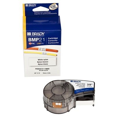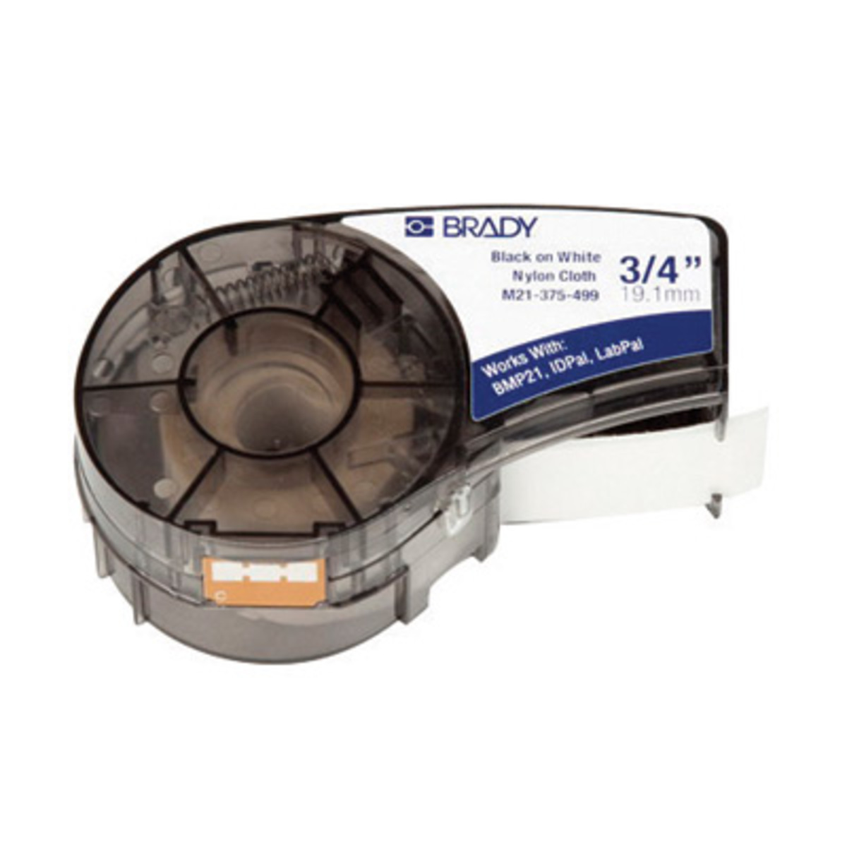<p><strong>Brady, M21-375-499, 110893 0.375"x16' White BMP21 Series Nylon Cloth Label</strong></p><p>The B-499 material has a protective polyamide coating and permanent acrylic adhesive to stay adhered to surfaces, even in autoclave, freezer, and liquid nitrogen environments</p><ul><li>Nylon cloth tape is ideal for use in cable and wire labeling, general-purpose marking in labs, equipment panels, and faceplates</li><li>Low-profile tape adheres to surfaces that are smooth, rough, or powder coated, as well as to irregular surfaces or surfaces with low surface energy</li><li>RoHS compliant to 2005/618/EC MCV amendment to RoHS Directive 2002/95/EC; UL approved; CSA accepted</li><li>All-in-one cartridge includes ribbon and label supply</li></ul>