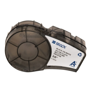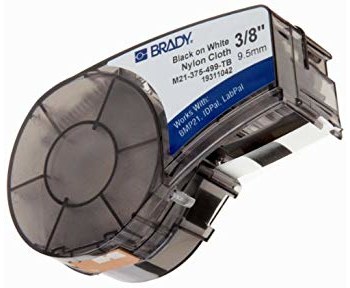 Brady .375" X 16' B499 Black On White Nylon Cloth Printer Labels For BMP 21 Mobile Printer, ID PAL And LABPAL Label Printers