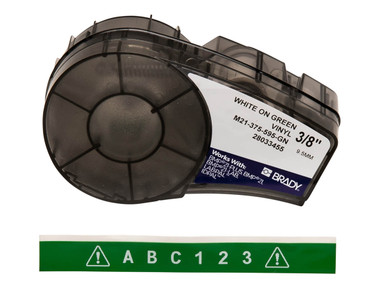 Brady Authentic (M21-375-595-GN) All-Weather Vinyl Label for Indoor/Outdoor ID, Lab and Equipment Labeling, White on Green- ForM210, M210-LAB, M211, BMP21-PLUS and BMP21-LAB Printers, .375" W, 21' L