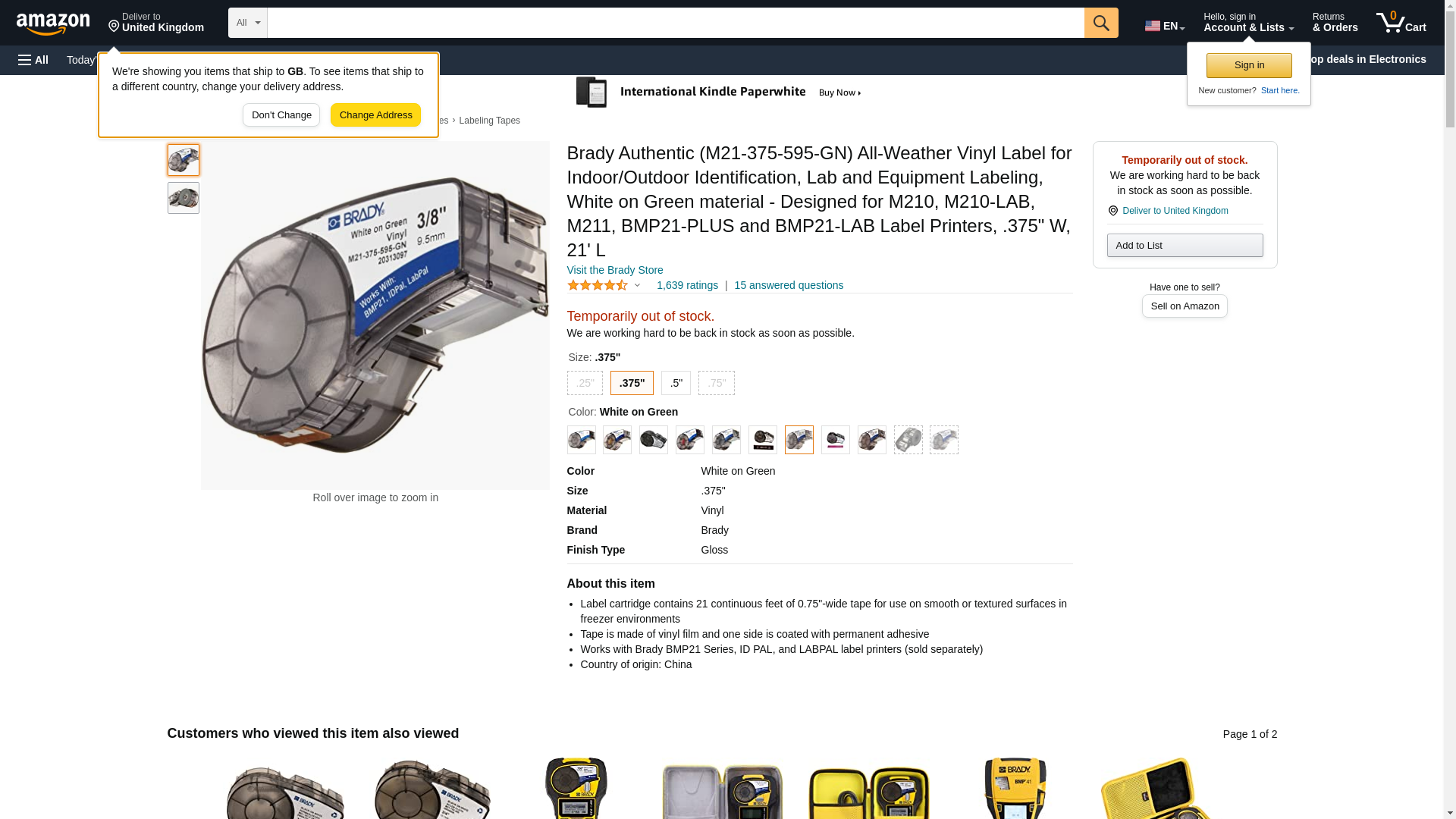 <p><strong>Brady, M21-375-595-GN, 142802 0.375"x21' Green BMP21 Series Indoor/Outdoor Vinyl Label</strong></p><p>With the ability to last up to 10 years in an outdoor environment, Brady’s low shrink vinyl with ultra-aggressive adhesive (B-595) is ideal for a wide range of identification applications.</p><p><strong>Features:</strong></p><ul><li>Application Versatility – Highly pliable material with high-tack permanent adhesive for rough, highly textured, dirty, and harsh environment surfaces, and can be applied in cold temperatures</li><li>Industrial Grade – Resists exposure to UV light, chemicals, greases and oils, salt spray, cleaners and detergents, and general industrial grime</li><li>Difficult Surfaces – Besides powder coated metal, also adheres to difficult surfaces such as painted cinder block, painted wood, textured plastic, paper-jacketed pipes, and blow-molded cases</li><li>Certifications – RoHS compliant to 2011/65/EU (Pass 2015/863)</li><li>For material specific performance and properties, please refer to the Technical Data Sheet (TDS)</li></ul>