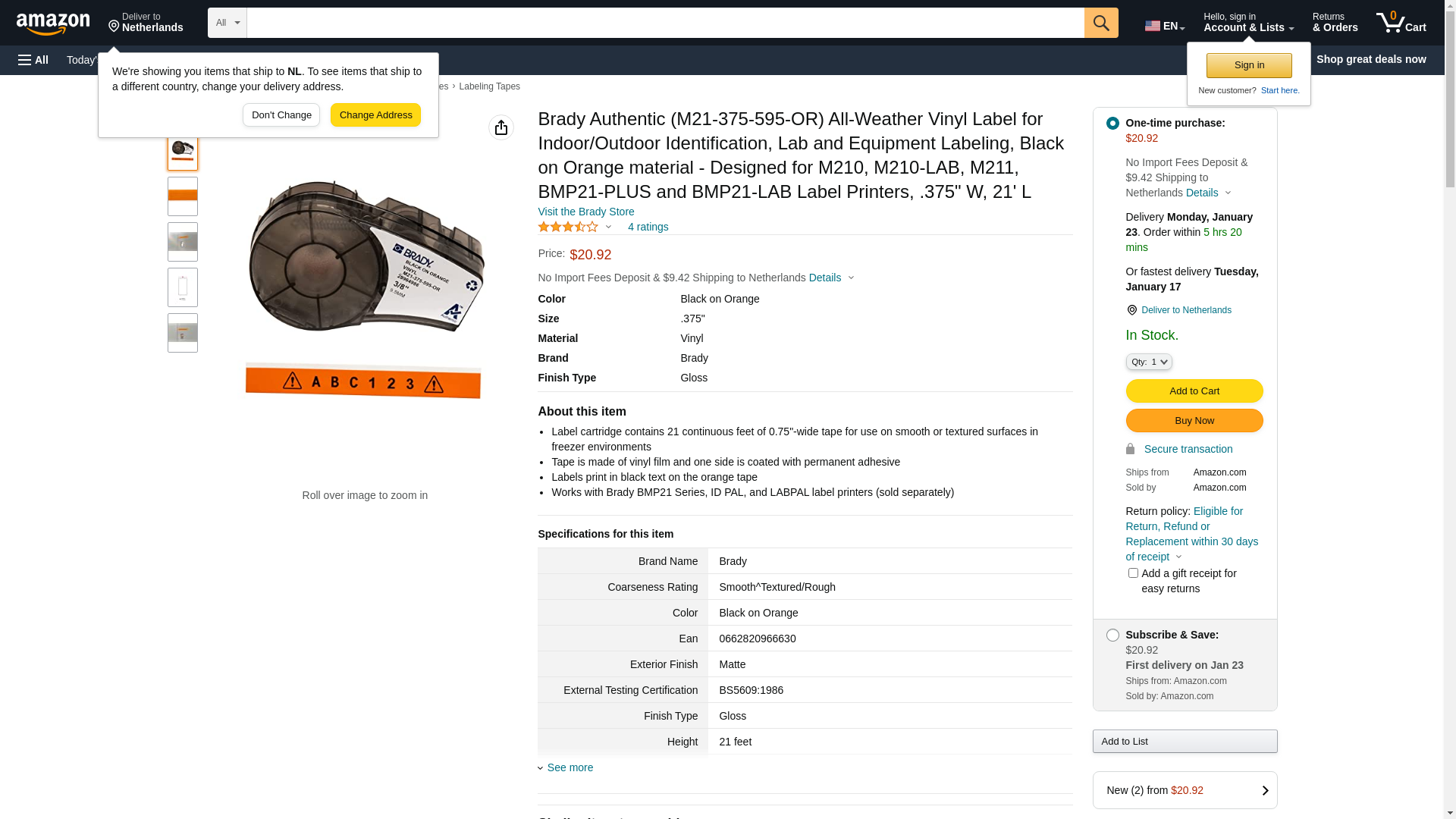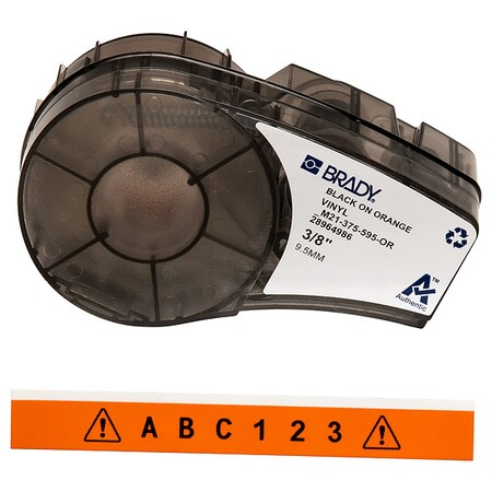 Brady Authentic (M21-375-595-OR) All-Weather Vinyl Label for Indoor/Outdoor ID, Lab and Equipment Labeling, Black on Orange- For M210, M210-LAB, M211, BMP21-PLUS and BMP21-LAB Printers, .375" W, 21' L
