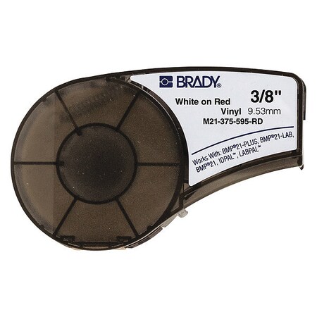 Brady Label Tape Cartridge, Label Type Vinyl White/Red Vinyl B595 M21-375-595-RD - 1 Each