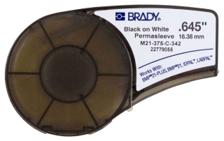 <strong>Brady, M21-375-C-342, BMP21 PermaSleeve Wire Marking Sleeve, 7', Polyolefin, 12 to 4 Gauge</strong><strong>Features:</strong>3:1 heat-shrinking wire sleeve is ideal for labeling in harsh environments and is resistant to chemicals, grease, oil and cleaning agentsPolyolefin wire marking sleeves have a smudge-proof finish and print in black text on a white backgroundPermaSleeve labels provide wire identification that combines speed, ease of use and permanence for long-lasting, high quality identificationCold resistant and flame-retardant with an operating temperature of -67° F to 275° F (-55° C to 135° C)PermaSleeve wire labels are ideal for electrical contractors, maintenance crews and industrial professionals<strong>Applications:</strong>Cable and Wire MarkingPanel LabelingThe B-342 Polyolefin PermaSleeve material is a non-adhesive, heat-shrinking sleeve that fits around wires or cables for easy permanent identification