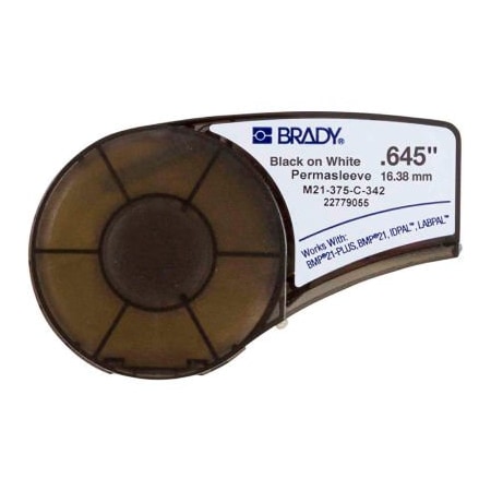 Brady Authentic (M21-375-C-342) PermaSleeve Heat Shrink Tubing for Control and Electrical Panels, Wire Harness, Black on White- For M210, M210-LAB, M211, BMP21-PLUS and BMP21-LAB Printers, .645" W 7'L