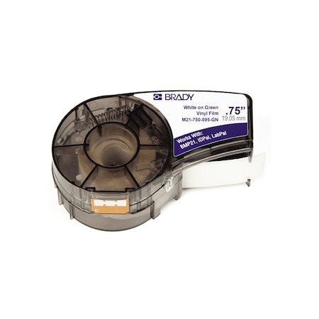 Part Number: 662820966623 <br> Part: Brady M21-750-595-GN Tape Refill Cartridge, 0.75" x 21' <br> Refill Cartridge, Vinyl Tape, Dimensions: 0.75" x 21', Color: White on Green, Compatible With: Brady BMP 21 Mobile Printer, ID PAL, LABPAL Label Printer Labels <br> Color: Green <br> Length: 21 ft <br> Material: Vinyl <br> Type: Label, Permanent, Vinyl <br> Product Width: 3/4 in <br> Also known as: 662820966623, BMP21, B595, Vinyl, Cartridge, BRAM21750595GN, Brady, M21-750-595-GN, Permanent Tapes, Labels & Refill Cartridges, Marking & Labeling, Tools, Testing, Meters <br> Equivalent to: <ul></ul>