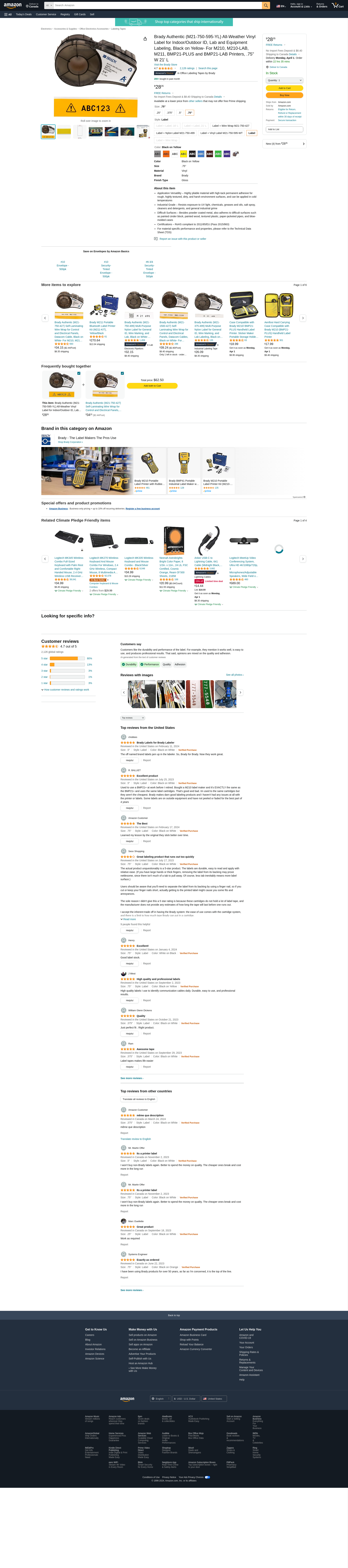 | Feature | "Made from Brady's B-595 vinyl material with permanent acrylic adhesive that keeps labeling tape adhered in harsh climates including in autoclave, freezer, and liquid nitrogen environments" |