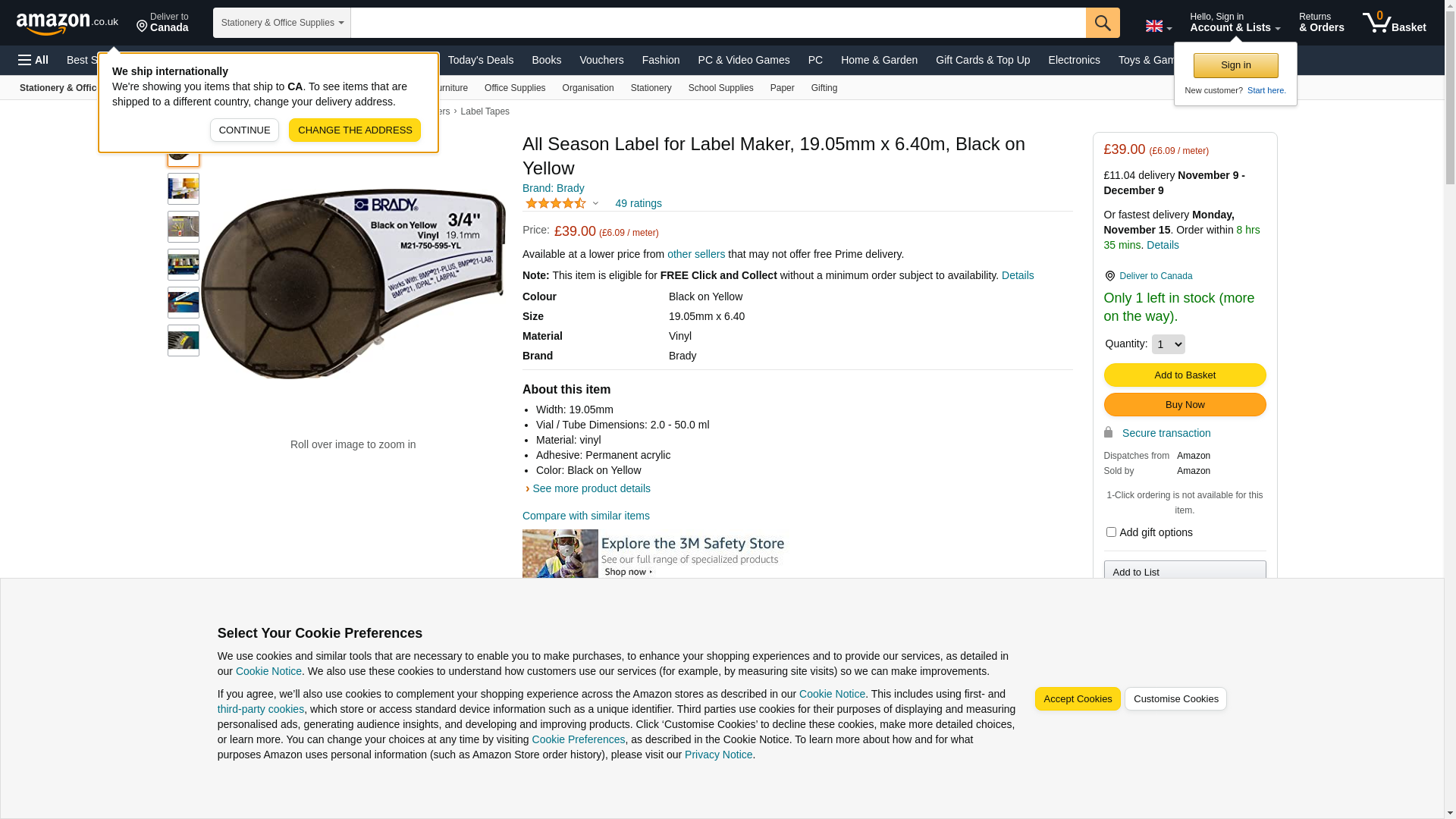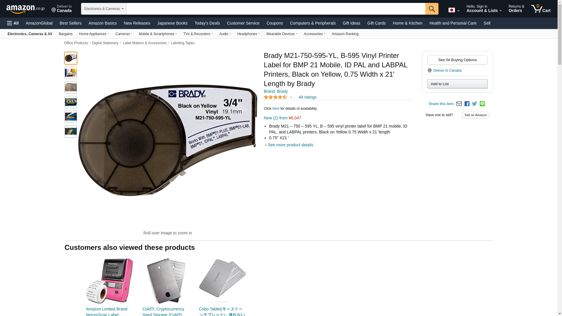 Brady M21-750-595-YL, 142811 0.75" x21' Yellow BMP21 Series Indoor/Outdoor Vinyl Label, Pack of 6 Cartridges