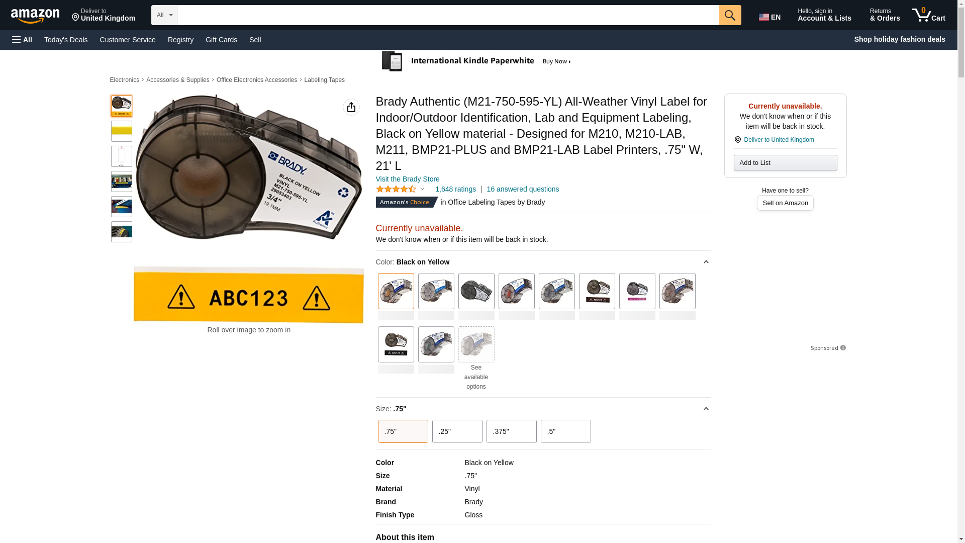 Brady Authentic (M21-750-595-YL) All-Weather Vinyl Label for Indoor/Outdoor ID, Lab and Equipment Labeling, Black on Yellow- For M210, M210-LAB, M211, BMP21-PLUS and BMP21-LAB Printers, .75" W 21' L