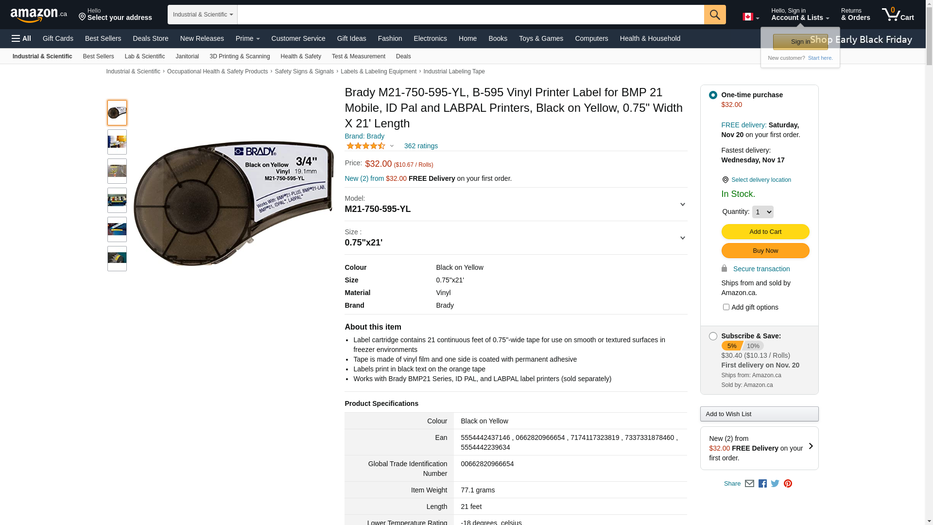 <p><strong>Brady, M21-750-595-YL, 142811 0.75" x 21' Yellow BMP21 Series Indoor/Outdoor Vinyl Label</strong></p><p>This durable, low-shrink vinyl with ultra-aggressive adhesive is ideal for labeling pipes, equipment, shelves and nearly any other industrial surface.</p><p><strong>Features:</strong></p><ul><li>Highly pliable material with high-tack permanent adhesive for rough, highly textured, dirty and harsh environment surfaces--including outdoors</li><li>Conforms and adheres to "difficult" surfaces like painted cinder blocks, painted wood, textured plastic, paper-jacketed pipes and blow-molded cases</li><li>Resistant to exposure to chemicals, greases and oils, salt spray, cleaners and detergents and general industrial grime</li><li>All-in-one cartridge includes ribbon and label supply</li></ul>
