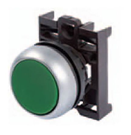 Eaton M22S-D-G-GB1 Pushbutton, 22mm Diameter, Flush Mounted, Green Actuator, Black Bezel, Off-On Action