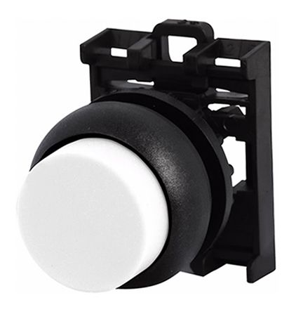 Eaton M22S-DH-W Pushbutton, 22mm Diameter, Extended Mounted, White Actuator, Black Bezel, Off-On Action