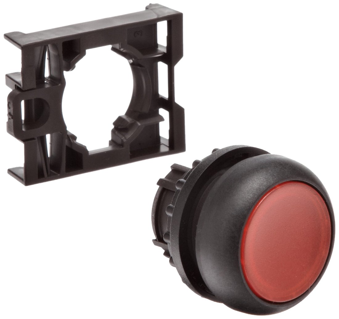 Eaton M22S-DL-R Pushbutton, Illuminated, 22mm Diameter, Red Color, Black Bezel Color, Off-On Style
