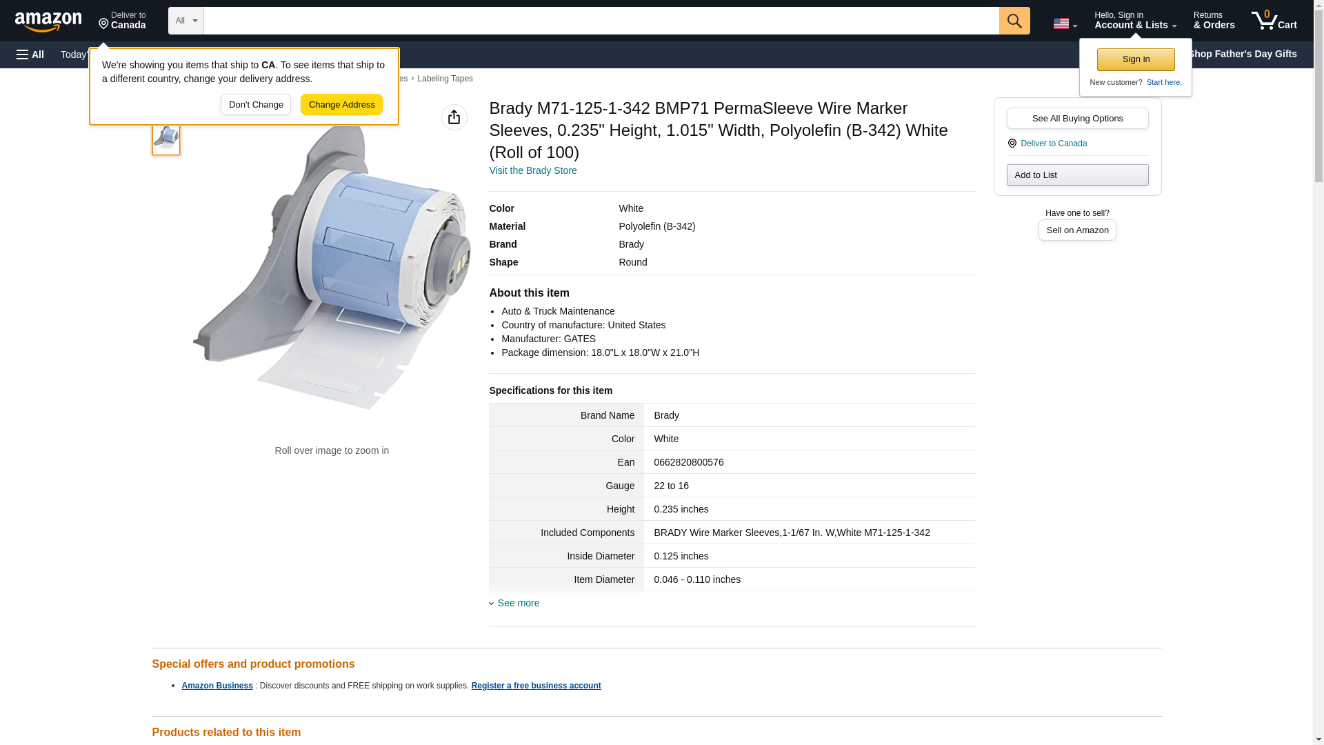 Brady M71-125-1-342 BMP71 PermaSleeve Wire Marker Sleeves, 0.235" Height, 1.015" Width, Polyolefin (B-342) White (Roll of 100)