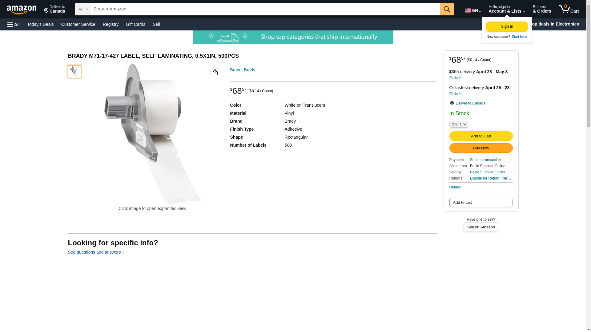 <p><strong>Brady, M71-17-427, 115094 1" x 0.5" BMP71 Self-Laminating Vinyl Wire and Cable Label</strong></p><p><strong>Features:</strong></p><ul><li>Self-Laminating Vinyl (B-427) is an excellent material for wire and cable identification. This material has good clarity, conformability and is self-extinguishing.</li><li>Provided in a self-laminated format with a white printable zone and translucent overlaminating area to protect text.</li><li>Durable, permanent acrylic adhesive has outstanding water and oil resistance.</li><li>UL approved.</li><li>Service temperature of -40 DegreeF to 158 DegreeF (-40 DegreeC to 70 DegreeC).</li></ul>
