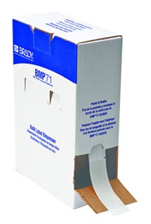 Brady, M71-23-427, 115089 4" x 1" BMP71 Self-Laminating Vinyl Wire and Cable Label Features: Self-Laminating Vinyl (B-427) is an excellent material for wire and cable identification. This material has good clarity, conformability and is self-extinguishing. Provided in a self-laminated format with a white printable zone and translucent overlaminating area to protect text. Durable, permanent acrylic adhesive has outstanding water and oil resistance. UL approved. Service temperature of -40 Degree F to 158 Degree F (-40 Degree C to 70 Degree C).