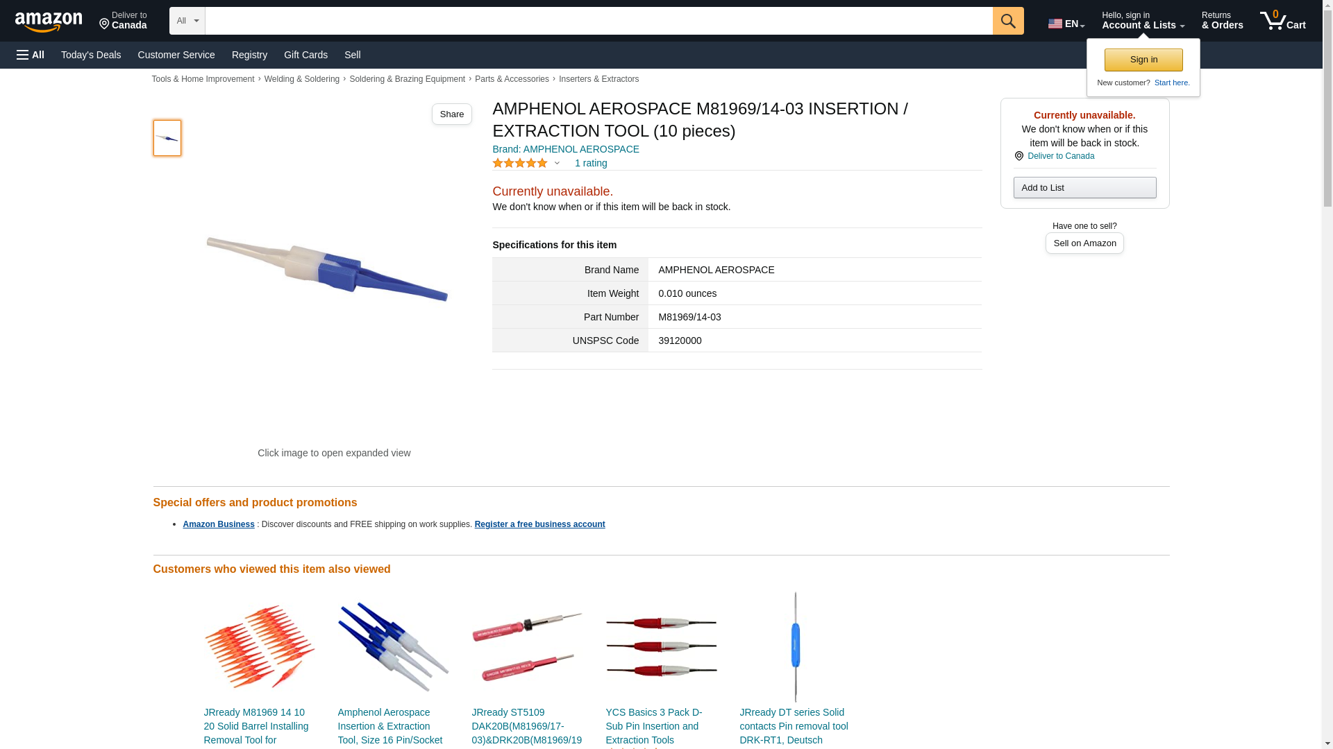 | Feature | AMPHENOL AEROSPACE M81969/14-03 INSERTION / EXTRACTION TOOL |