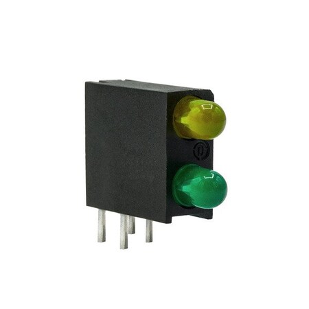 - <b>Price For:</b> Each <b> LED Color:</b> Yellow / Green <b> Height:</b> 9.652mm <b> Width:</b> 4.318mm <b> No. of LEDs:</b> 2 <b> Forward Voltage / Color:</b> Y 1.8V / G 1.9V <b> LED Mounting:</b> Through Hole <b> Luminous Intensity / Color:</b> Y 5mcd / G 1.6mcd <b>RoHS Compliant:</b> Yes