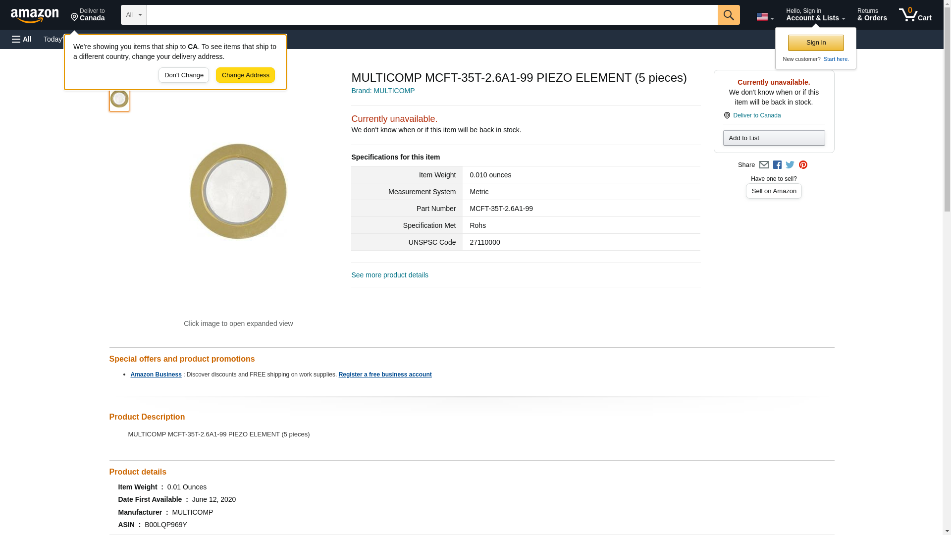 Multicomp Pro Piezo Element - MCFT-35T-2.6A1-99