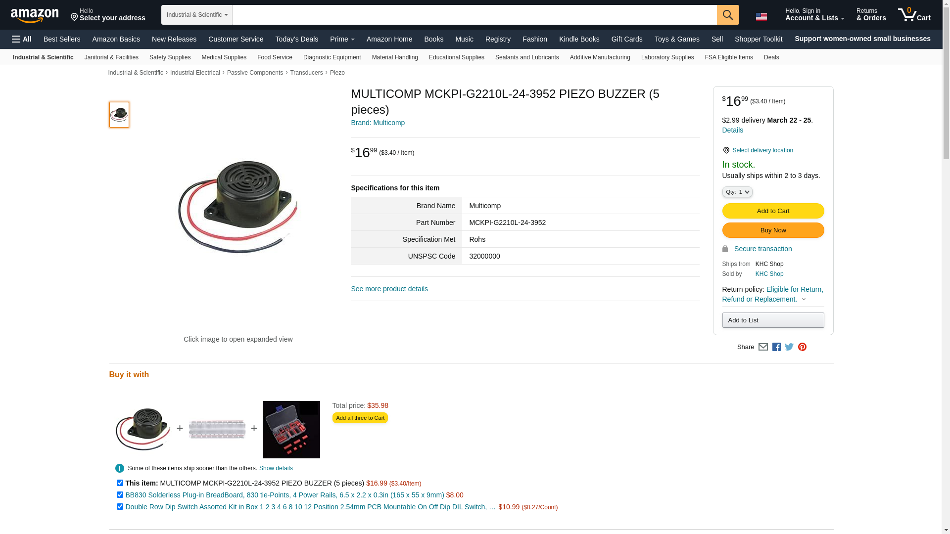 MULTICOMP MCKPI-G2210L-24-3952 PIEZO BUZZER (500 pieces)