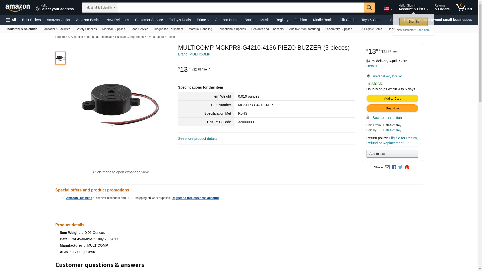 MULTICOMP MCKPR3-G4210-4136 PIEZO BUZZER (500 pieces)