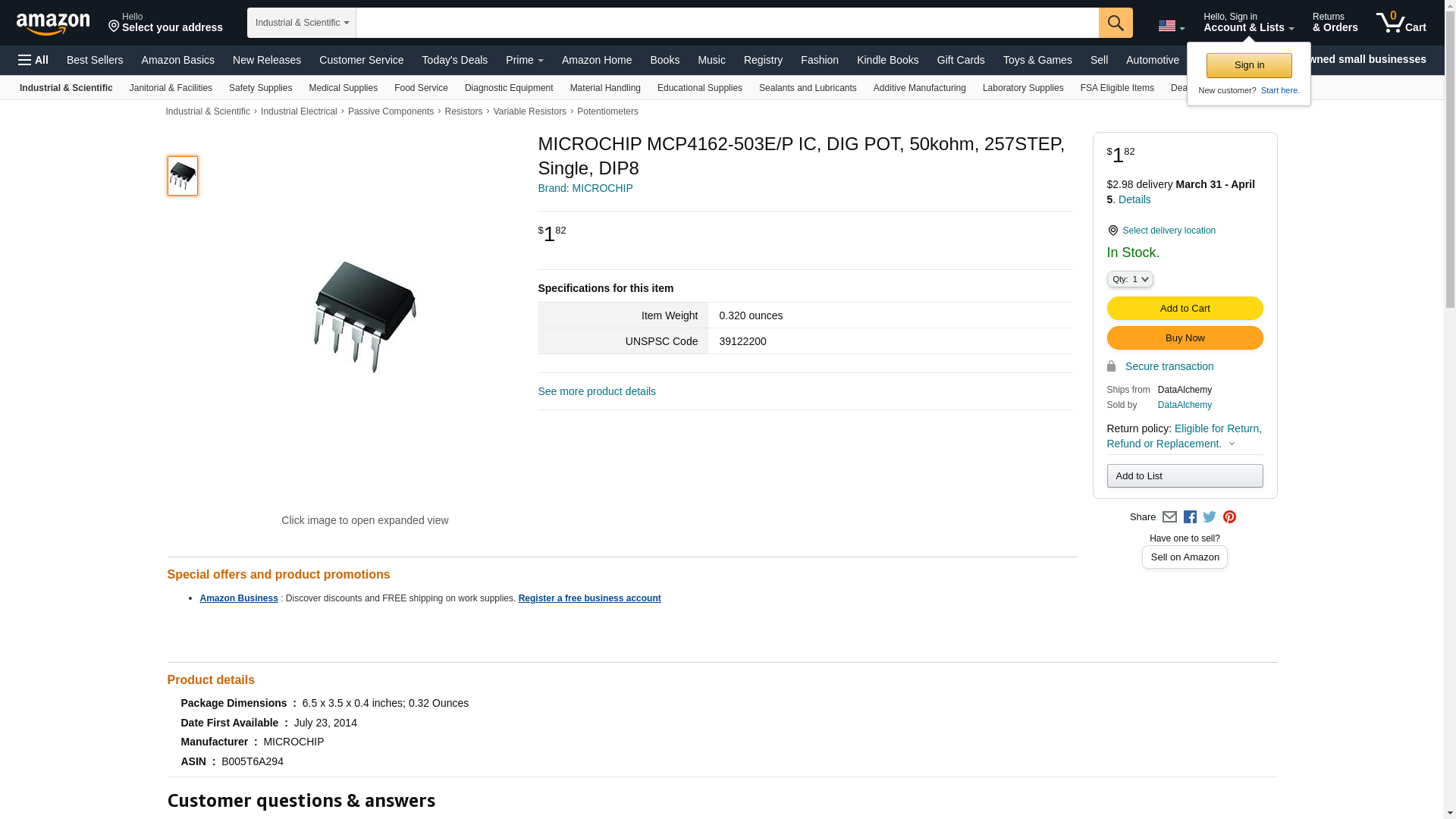| 1Source | MCP4162-503E/P | 1 | 1 | ||