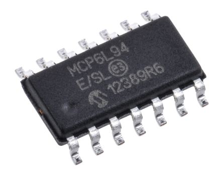 MICROCHIP MCP6L94T-E/SL IC, OP-AMP, 10MHZ, 7V/ us, SOIC-14 (1 piece)