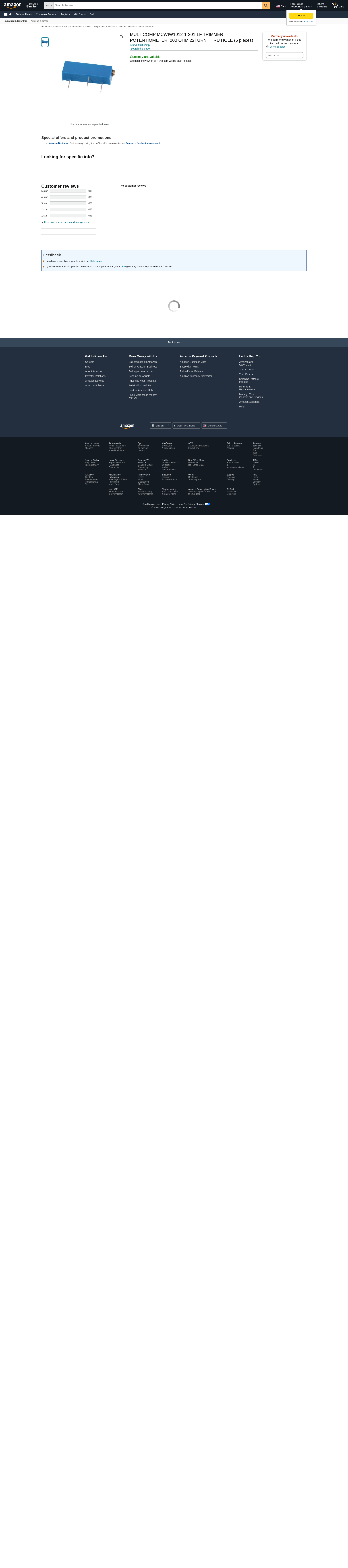MULTICOMP MCWIW1012-1-201-LF TRIMMER, POTENTIOMETER, 200 OHM 22TURN THRU HOLE (100 pieces)