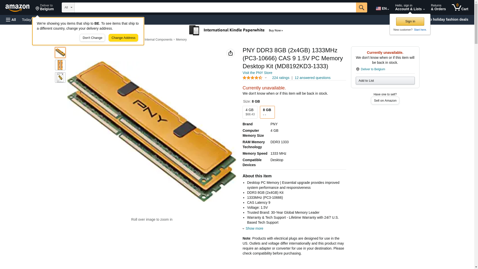 | Part number | PNY Techno-MD8192KD3-1333 |
