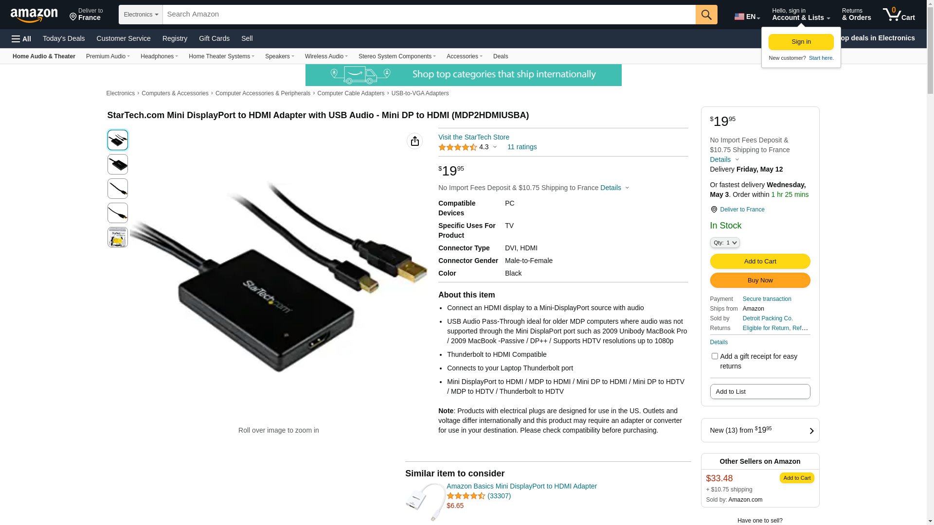 Amazon.com: StarTech.com Mini DisplayPort to HDMI Adapter with USB Audio - Mini DP to HDMI (MDP2HDMIUSBA) : Electronics
