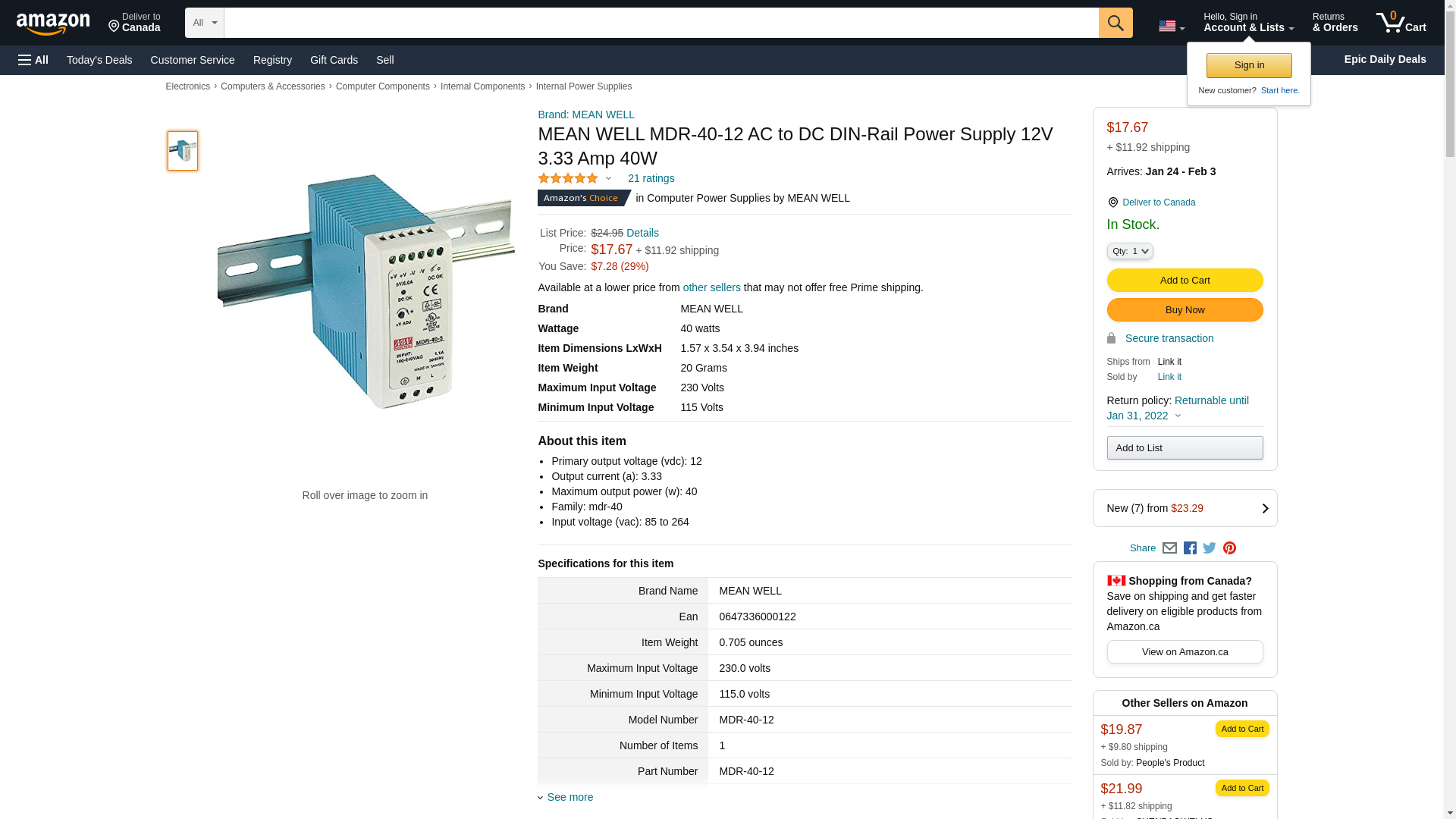| electricautomationnetwork.com | MDR-40-12 | 1 | 1 | 1 @ $28.38 | |