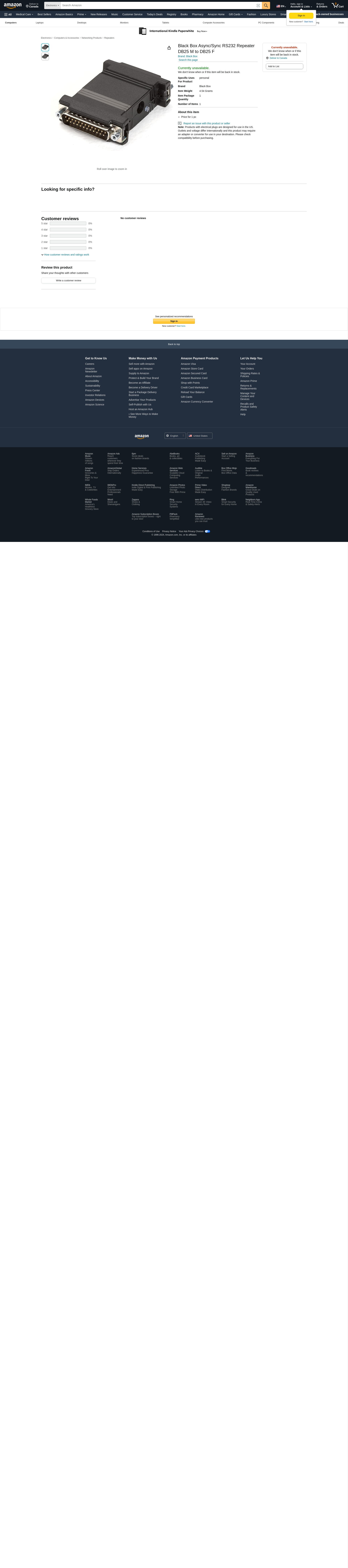 Black Box Async/Sync RS232 Repeater DB25 M to DB25 F