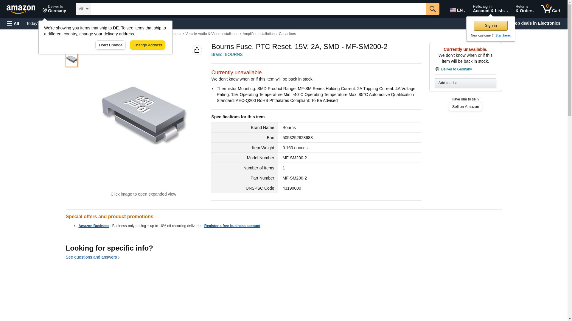 | Feature | BOURNS MF-SM200-2 FUSE, PTC RESET, 15V, 2A, SMD |