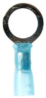 - <b>Price For:</b> Each <b>Insulation Type</b>: Heat Shrink <b>Max. Voltage</b>: 600V <b>Seam</b>: Brazed <b>Stud Size</b>: 3/8" <b>Connection Type</b>: Crimp <b>Insulation Color</b>: Blue <b>Connection Material</b>: Copper <b>Tongue Width - Wire Connector</b>: 0.47" <b>Terminal Type</b>: Standard <b>Overall Length</b>: 1.100" <b>Wire Range</b>: 16 to 14 AWG <b>Standards</b>: UL listed, CSA certified <b>Max. Temp.</b>: 221 Degrees F <b>Item</b>: Ring Terminal