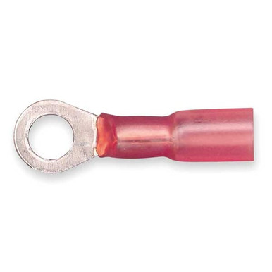 The 3M Scotchlok red brazed ring terminal is sold 125 per case and is another quality product from 3M. The overall length measures 1 in.