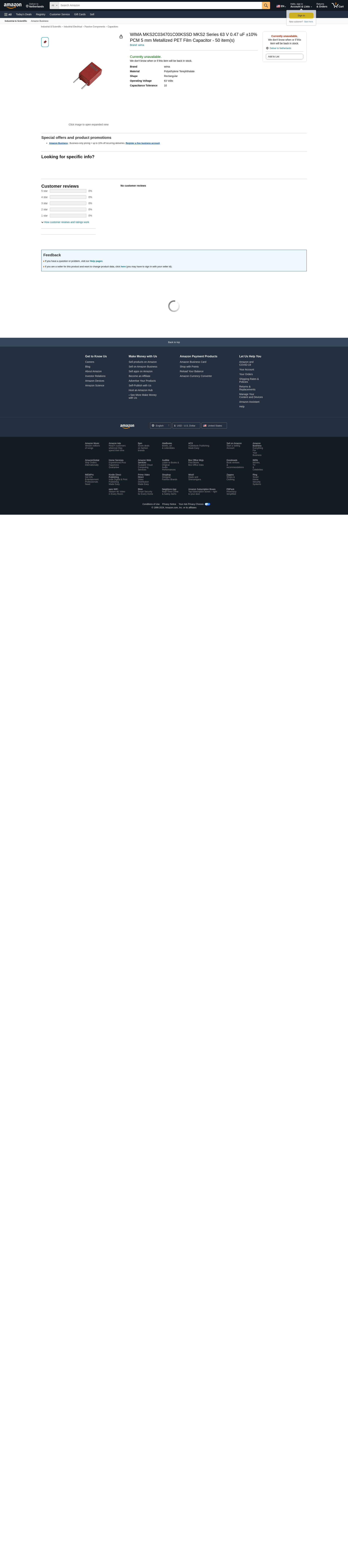 WIMA MKS2C034701C00KSSD MKS2 Series 63 V 0.47 uF ±10% PCM 5 mm Metallized PET Film Capacitor - 50 item(s)