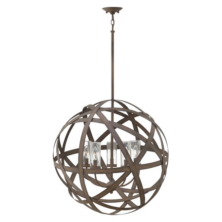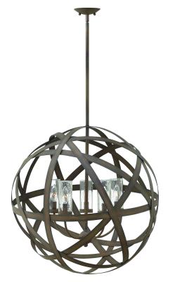Hinkley Carson Collection 26.25" Five Light 4W LED Outdoor Large Orb Pendant, Vintage Iron w/Clear Seedy Glass