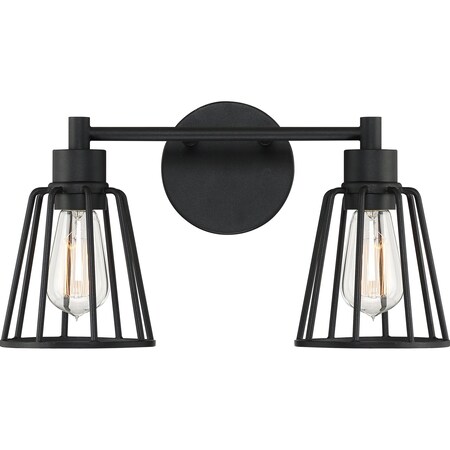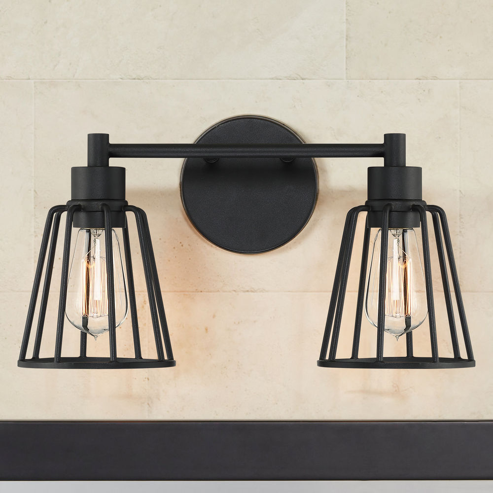 Quoizel ATT8602EK Atticus Vintage Cage-Like Vanity Wall Lighting, 2-Light, 200 Watts, Earth Black (9"H x 16"W)