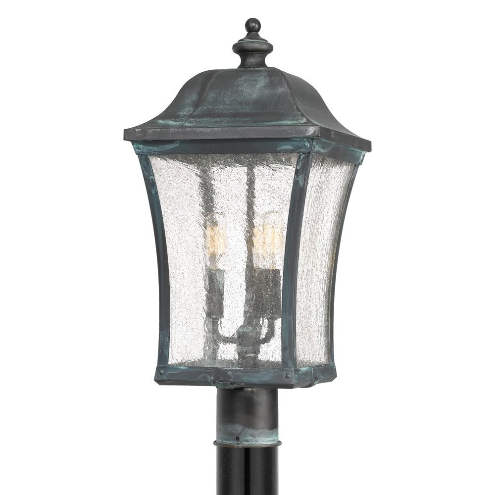 Quoizel BDS9010AGV Transitional Three Light Outdoor Post Lantern from Bardstown Collection Finish, 10.00 inches, Aged Verde