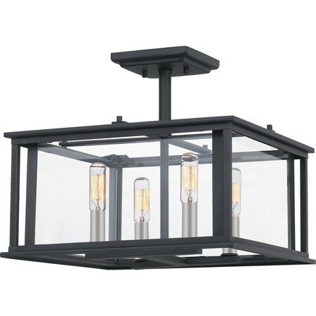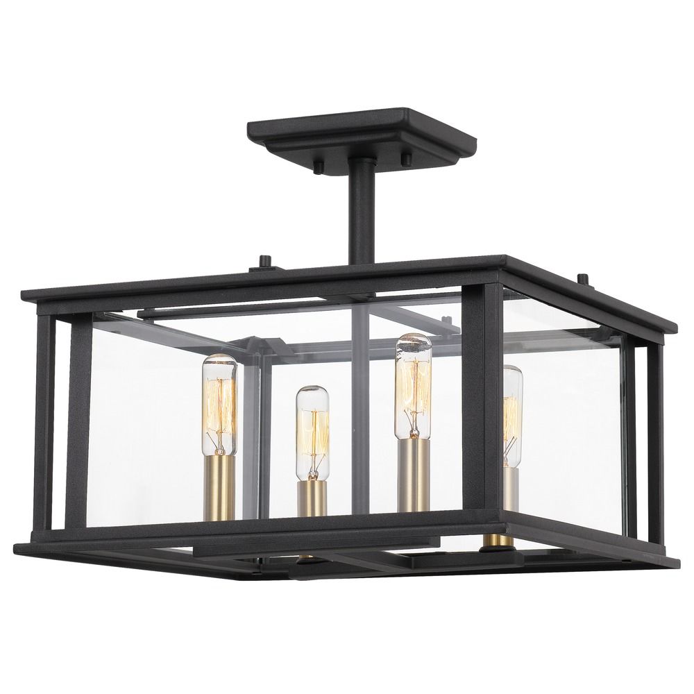 Quoizel CDL1714EK Citadel Classic 4-Panel Lantern Semi Flush Mount Ceiling Lighting, 4-Light, 240 Watts, Earth Black (12"H x 14"W)