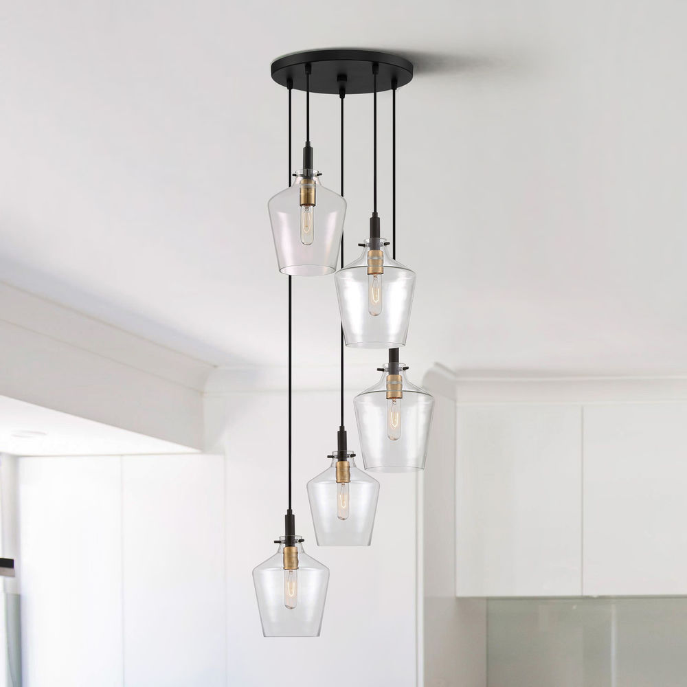 Quoizel JUN2705EK June Wind Chime Industrial Pendant Ceiling Lighting, 5-Light, 500 Watts, Earth Black (13"H x 18"W)