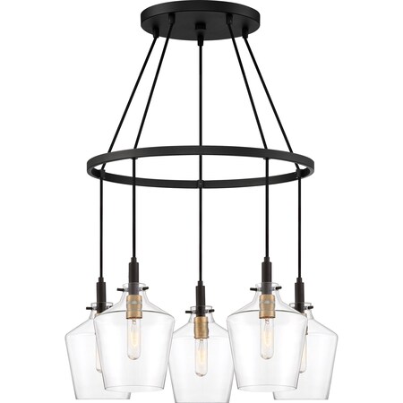 Quoizel JUN5005EK June Industrial Chandelier, 5-Light, 500 Watts, Earth Black (13"H x 26"W)