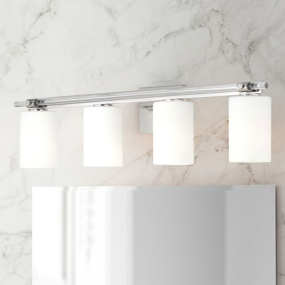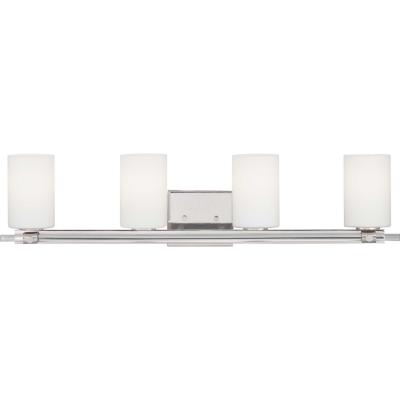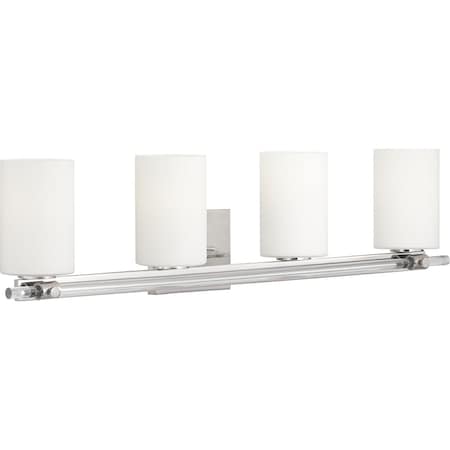 Progress Lighting Lisbon Collection 4-Light Etched Opal Glass Luxe Bath Vanity Light Polished Nickel