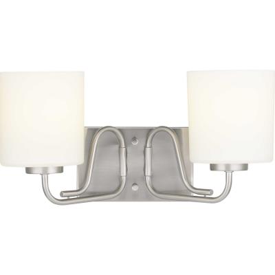 Progress Lighting Tobin Collection 2-Light Etched White Glass Modern Bath Vanity Light Brushed Nickel