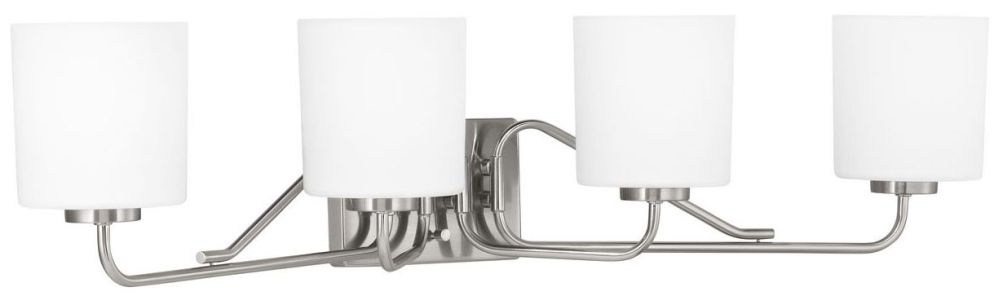 Progress Lighting Tobin Collection 4-Light Etched White Glass Modern Bath Vanity Light Brushed Nickel