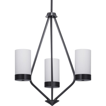 Progress Lighting Elevate Collection 3-Light Etched White Glass Mid-Century Modern Chandelier Light Matte Black