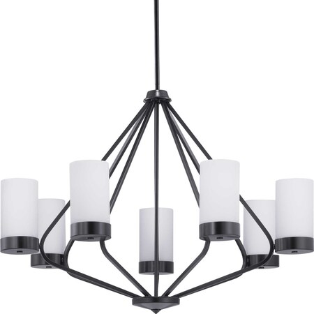 Progress Lighting Elevate Collection 7-Light Etched White Glass Mid-Century Modern Chandelier Light Matte Black