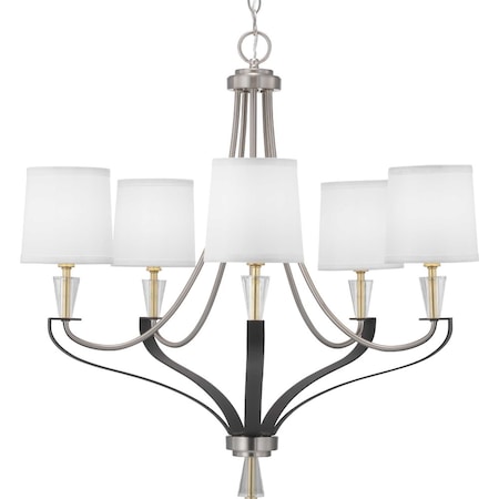 - With our without the white silk shades, the five-light chandelier adds modern-luxury flair to your room