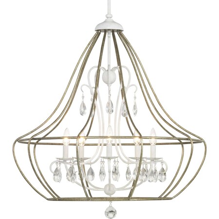 Progress Lighting P400152-151 Fleurette Collection Five-Light Chandelier, Cottage White